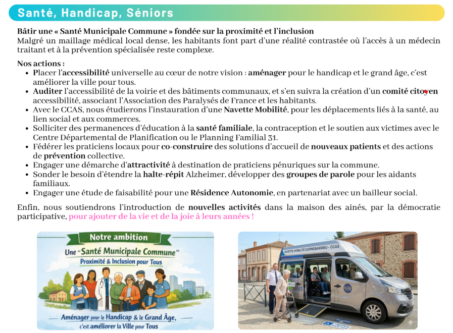 🔹Bâtir une santé municipale commune fondée sur la proximité et l’inclusion, et l’évolution démographique